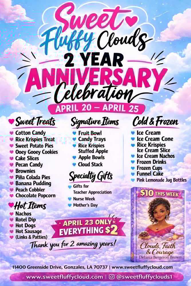 Sweet Fluffy Clouds has been serving love, flavor, and creativity for 2 amazing years โ and weโre just getting started โจ